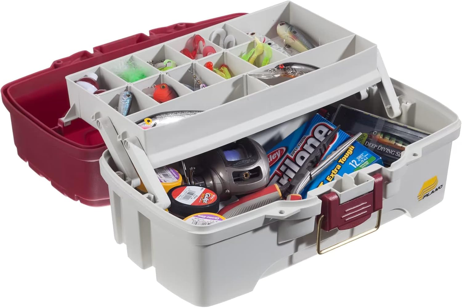 Plano 1-Tray Tackle Box with Dual Top Access, Red Metallic/Off White, Premium Tackle Storage (620106)